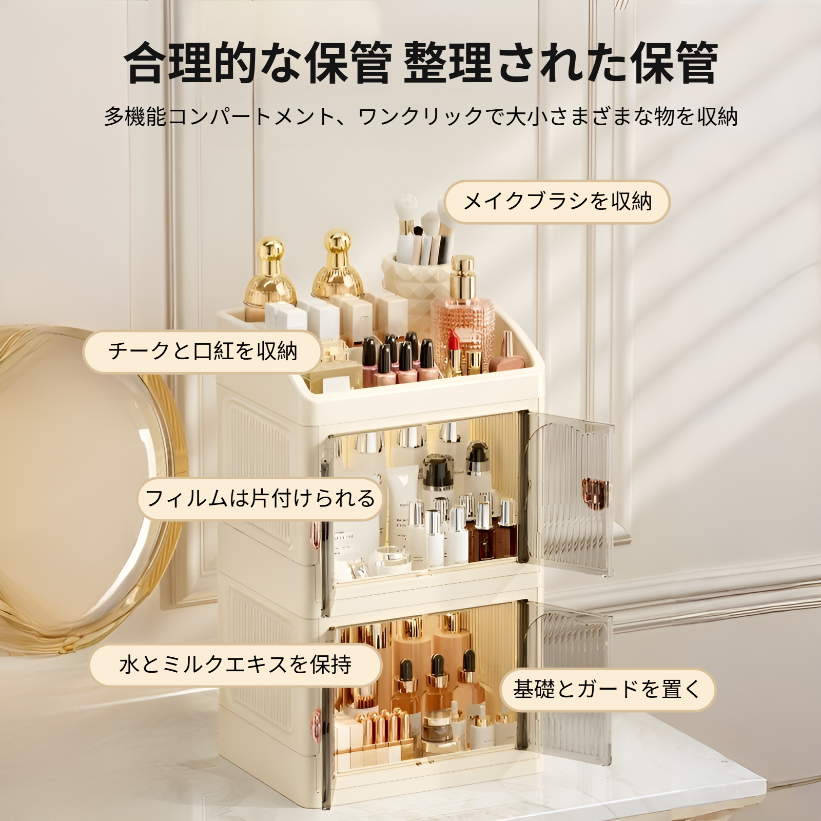 家庭用軽量高級デスクトップ化粧台スキンケアマスク防塵引き出し収納キャビネット化粧品収納ボックスラック