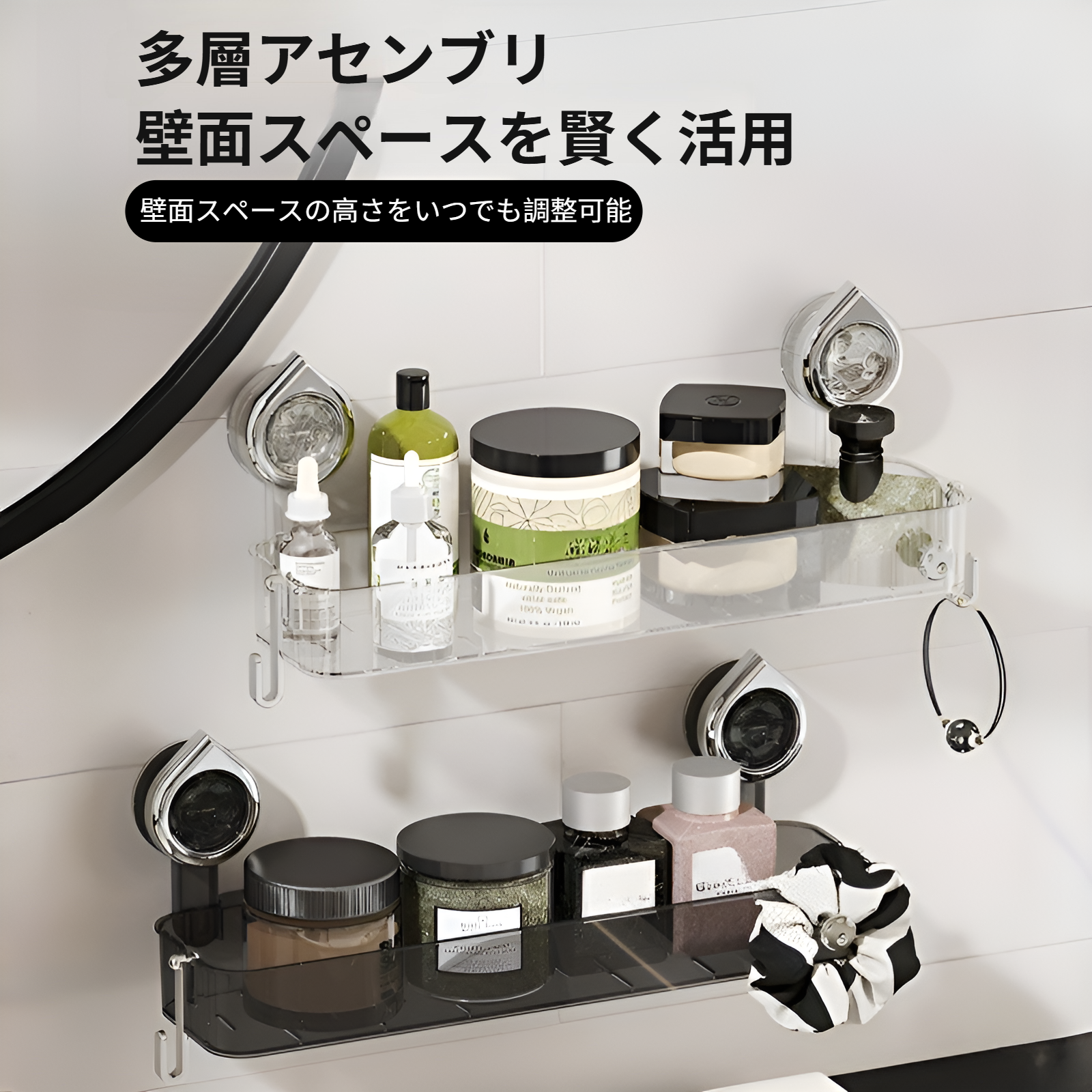 バスルームラック吸盤パンチフリーバスルーム洗面台シンクミラー壁掛けメイクアップ収納ラック